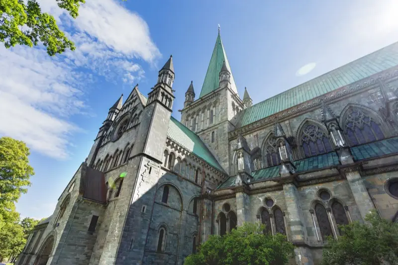 Tagesziel ist die einstige Wikingerhauptstadt Trondheim. Ein Besuch der Nidaros Domkirche aus dem 12. Jahrhundert ist unbedingt ein Muss.